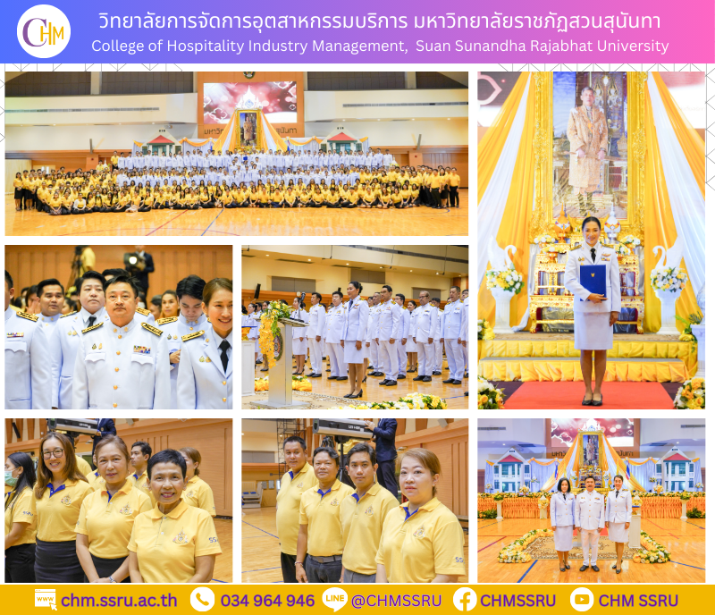 On April 1, 2025 Dr. Weera Weerasophon, the Dean of the College of Hospitality Industry Management, along with executives and staff, attended the ceremony to receive the royal command appointing "Associate Professor Dr. Chutikarn Sriviboon" as the new President of Suan Sunandha Rajabhat University. The ceremony took place at the 4th floor of the Suan Sunandha Health and Sports Center, Suan Sunandha Rajabhat University.