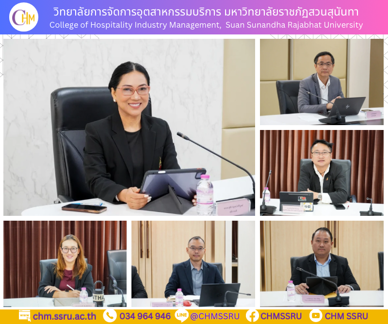 Dr. Weera Weerasophon, Dean of the College of Hospitality Industry Management, together with the executive team and staff, organized a meeting of the Personnel Development Fund Committee of the College of Hospitality Industry Management. The meeting was chaired by Associate Professor Dr. Chutikarn Sriviboon, President of Suan Sunandha Rajabhat University, and was held at the meeting room of the President’s Office, President’s Office Building.