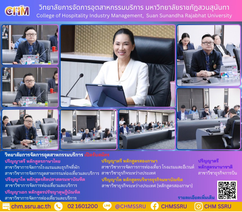 On Tuesday, April 7, 2026, Assistant Professor Dr. Weera Weerasophon, Dean of the College of Hospitality Industry Management, attended the 4/2026 University Executive Committee Meeting. The meeting was chaired by Associate Professor Dr. Chutikarn Sriviboon, President of Suan Sunandha Rajabhat University, and was attended by university executives, administrators of academic units, associate deans, and related personnel. The meeting was held at the University Council Meeting Room, 5th Floor, Building 31, and conducted online via Google Meet.