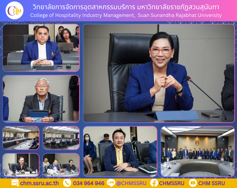 On Wednesday, May 7, 2025, the College of Hospitality Industry Management, represented by Dr. Weera Weerasophon, Dean of the College of Hospitality Industry Management, attended the preliminary verbal summary of the external quality assessment conducted by the Office for National Education Standards and Quality Assessment . The session was presided over by Assoc. Prof. Dr. Chutikarn Sriviboon, President of Suan Sunandha Rajabhat University, and was joined by the university’s executive team at the University Council Meeting Room, Building 31, 5th Floor, Suan Sunandha Rajabhat University.