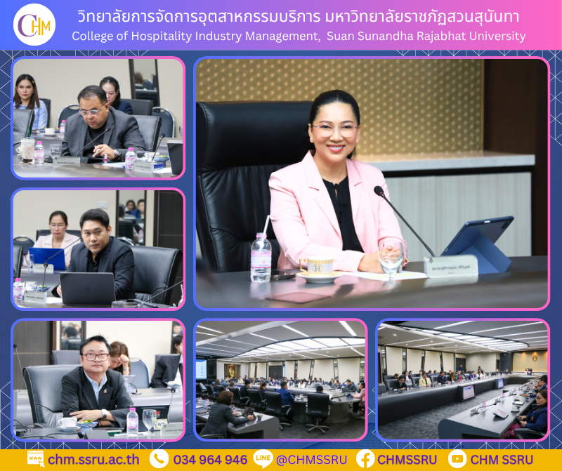 On May 13, 2025 Dr. Weera Weerasophon, Dean of the College of Hospitality Industry Management, attended the 5/2025 Executive Board Meeting of the University. The meeting was chaired by Associate Professor Dr. Chutikarn Sriviboon, President of Suan Sunandha Rajabhat University, and held at the University Council Meeting Room, 5th Floor, Building 31, Suan Sunandha Rajabhat University.