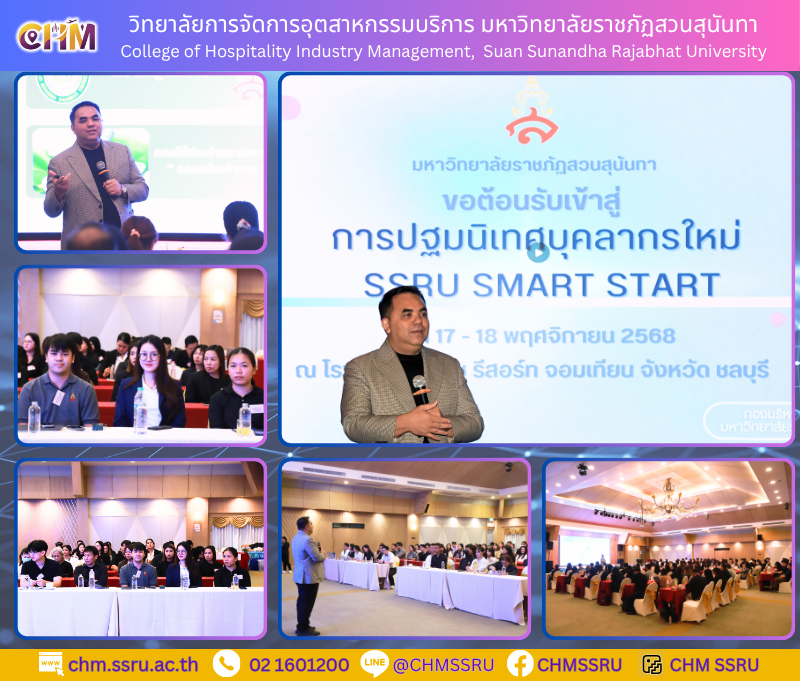 On 17–18 November 2025, lecturers and staff from the College of Hospitality Industry Management participated in the “SSRU SMART START” New Personnel Orientation Program, organized to enhance perspectives and work approaches for newly appointed university personnel.