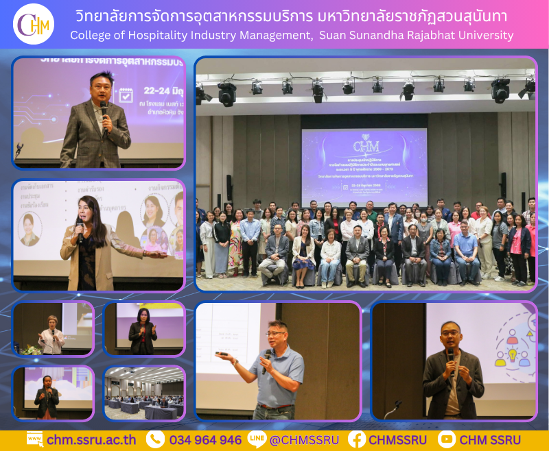 On Sunday, June 22, 2025, the College of Hospitality Industry Management, Suan Sunandha Rajabhat University, held a workshop on the development of the Annual Action Plan and the 5-Year Strategic Plan (2016–2030). The event was presided over by Asst. Prof. Dr. Weera Weerasophon, Dean of the College of Hospitality Industry Management, who delivered the opening remarks. He was joined by the executive team, who presented the administrative policies and operational plans. The workshop took place at the Best Western Plus Carapace Hotel, Hua Hin District, Prachuap Khiri Khan Province.