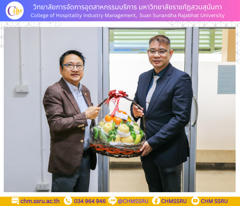 วันจันทร์ที่ 28 เมษายน 2568 วิทยาลัยการจัดการอุตสาหกรรมบริการ โดย ดร. วีระ วีระโสภณ คณบดีวิทยาลัยการจัดการอุตสากรรมบริการ ได้มอบกระเช้าแสดงความยินดีกับ ดร.เทพลักษณ์ โกมลวณิช ในโอกาสสําเร็จการศึกษา นิเทศศาสตรดุษฎีบัณฑิต สาขาวิชา การสื่อสาร ณ ห้องประชุม 3621 อาคาร 36 วิทยาลัยการจัดการอุตสาหกรรมบริการ มหาวิทยาลัยราชภัฏสวนสุนันทา