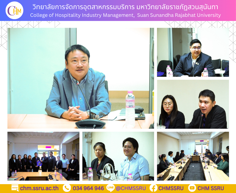 วันที่ 30 เมษายน 2558 อาจารย์ ดร.วีระ วีระโสภณ คณบดีวิทยาลัยการจัดการอุตสาหกรรมบริการ พร้อมด้วยผู้บริหารและบุคลากร จัดประชุมหารือการจัดทําความร่วมมือระหว่างมหาวิทยาลัยราชภัฏสวนสุนันทา กับ บริษัท ฟู้ดแพชชั่น จํากัด ณ ห้องประชุม 3621 อาคาร 36 มหาวิทยาลัยราชภัฏสวนสุนันทา โอกาสนี้ สถาบันคุณวุฒิวิชาชีพ (องค์การมหาชน) โดยคุณพิริยพงศ์ แจ้งเจนเวทย์ ผู้อําานวยการสํานักส่งเสริมสถานประกอบการ และการอบรมด้วยระบบคุณวุฒิวิชาชีพ เข้าร่วมประชุมในครั้งนี้ด้วย