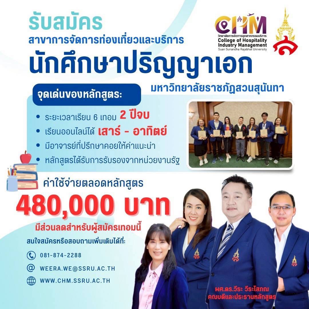 + การจัดการการท่องเที่ยว โรงแรมและอีเวนต์ (หลักสูตรสองภาษา)