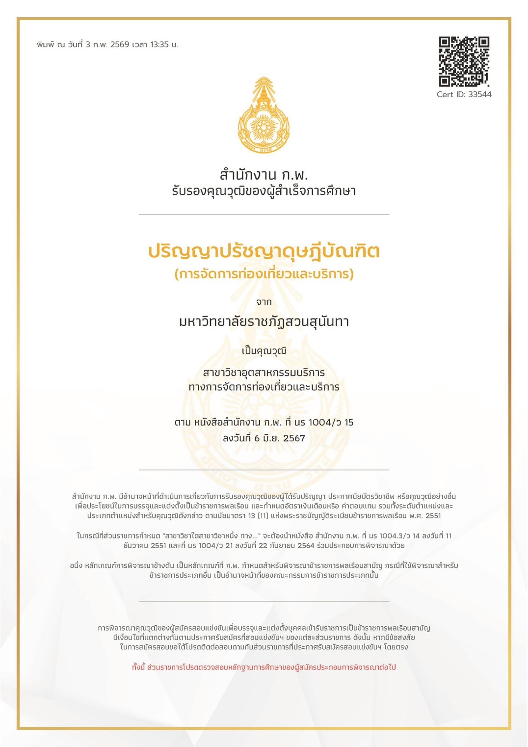 > การจัดการท่องเที่ยวและบริการ (ปริญญาเอก)