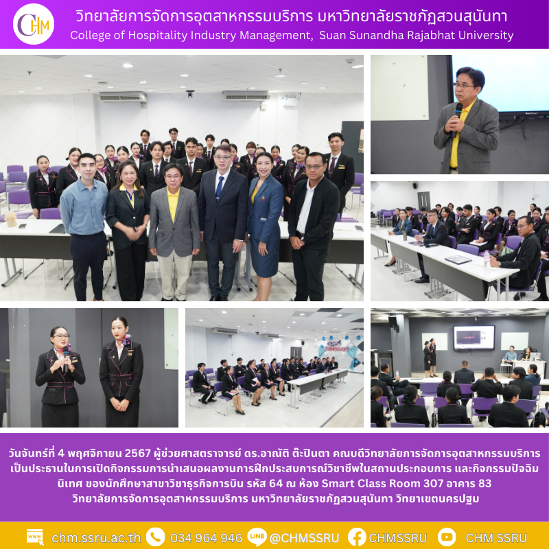การนำเสนอผลการฝึกปฏิบัติงานของนักศึกษาสาขาธุรกิจการบิน รหัส 64