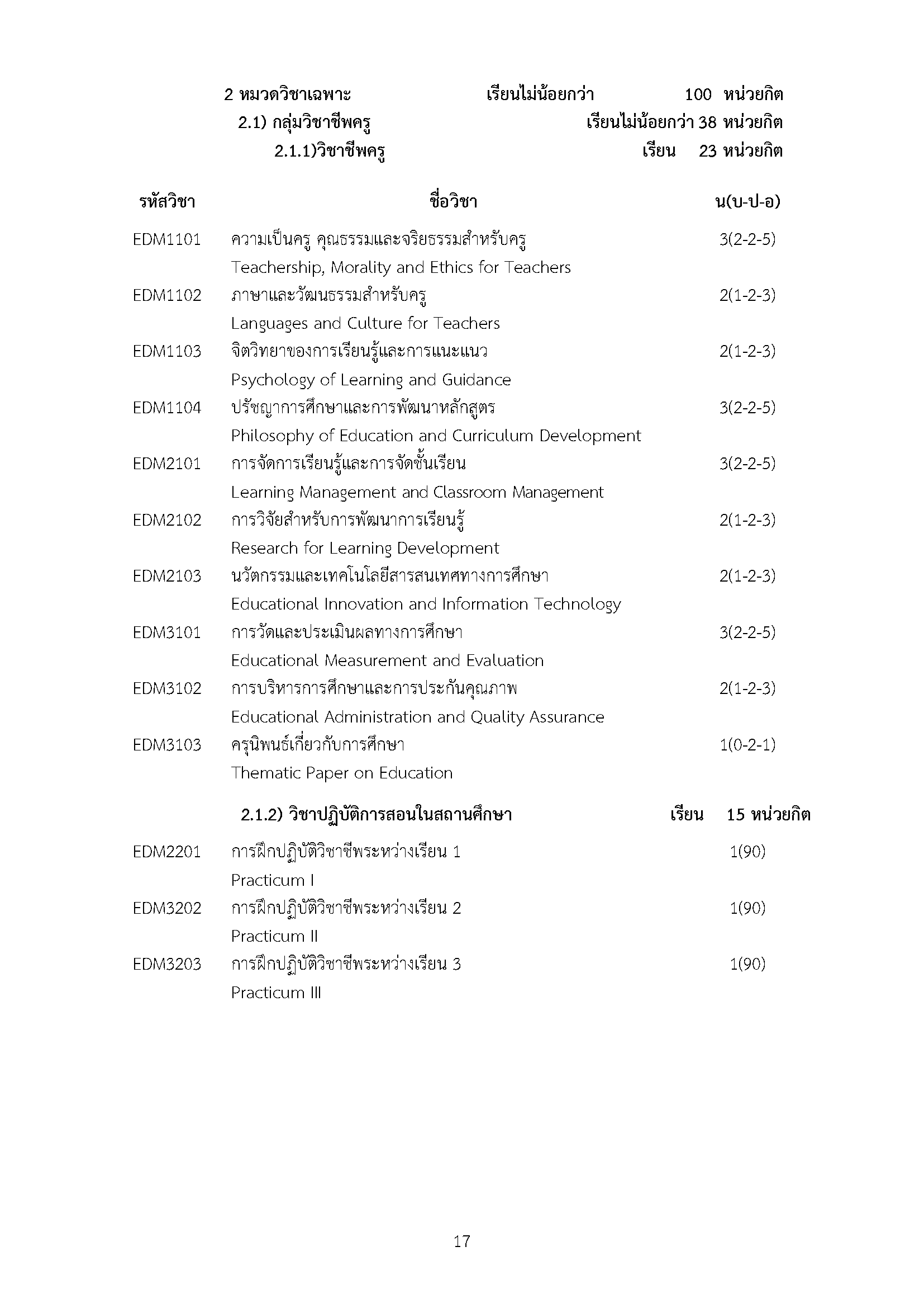 โครงสร้างหลักสูตรสาขาคณิตศาสตร์ (หลักสูตรสองภาษา )